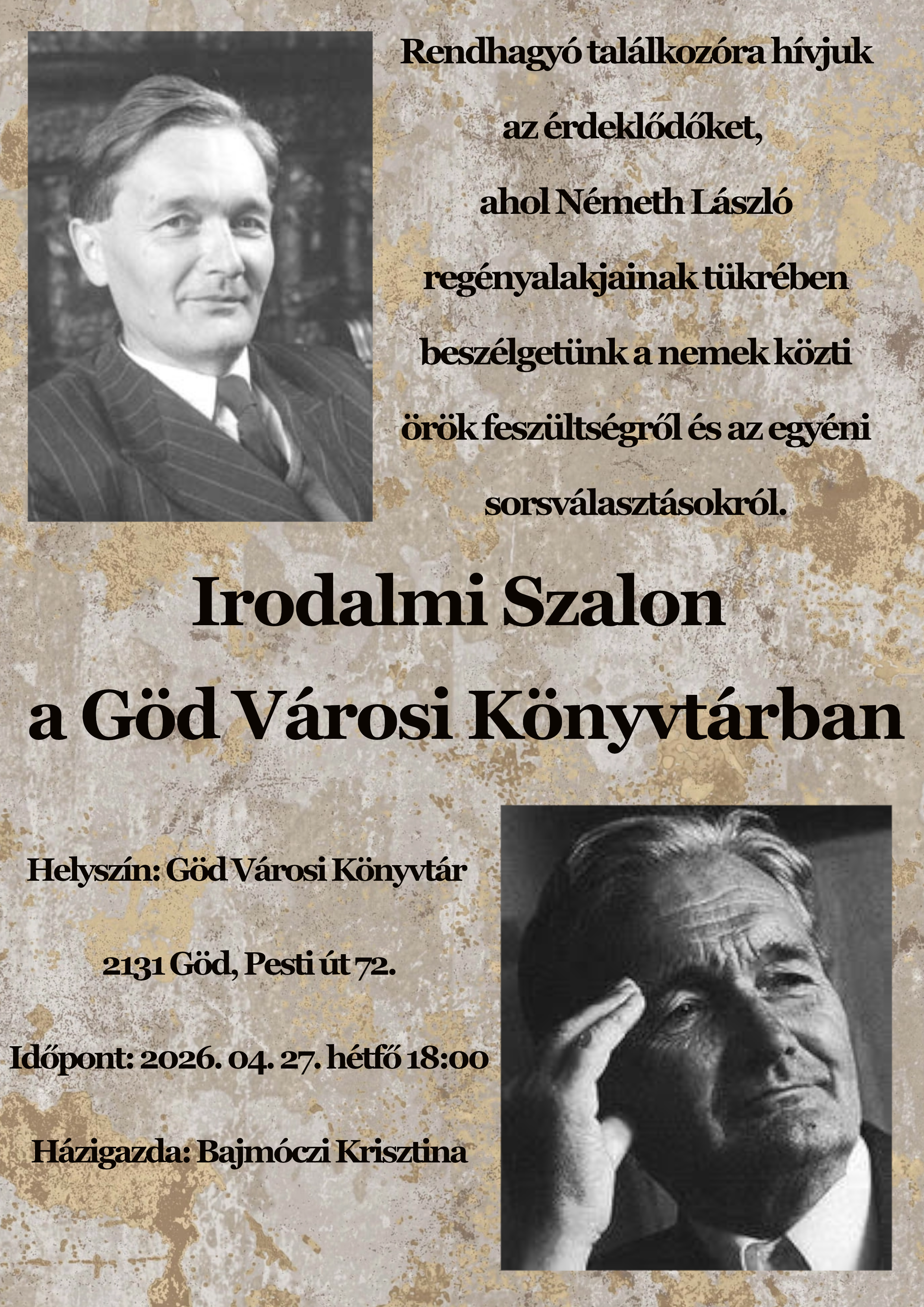 Rendhagyó találkozóra hívjuk az érdeklődőket, ahol Németh László regényalakjainak tükrében beszélgetünk a nemek közti örök feszültségről és az egyéni sorsválasztásokról.